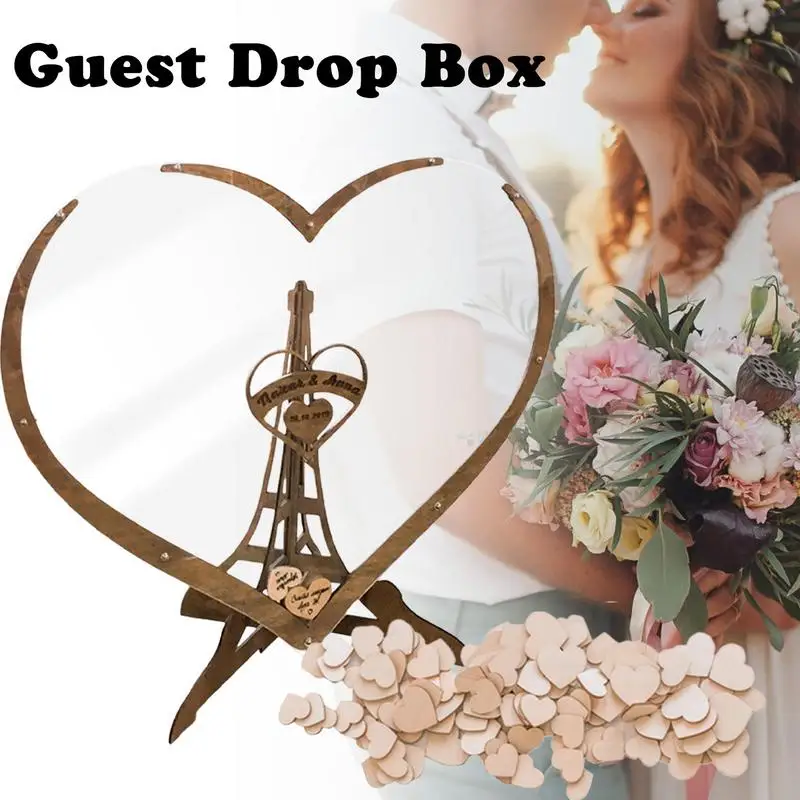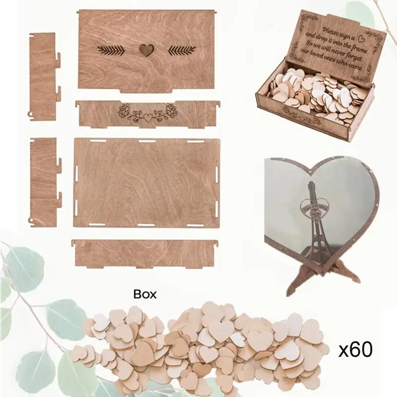 60 деревянных сердец, в деревенском стиле, сладкая Свадебная книга, в форме сердца, в форме капли, гостевая книга, свадебная книга