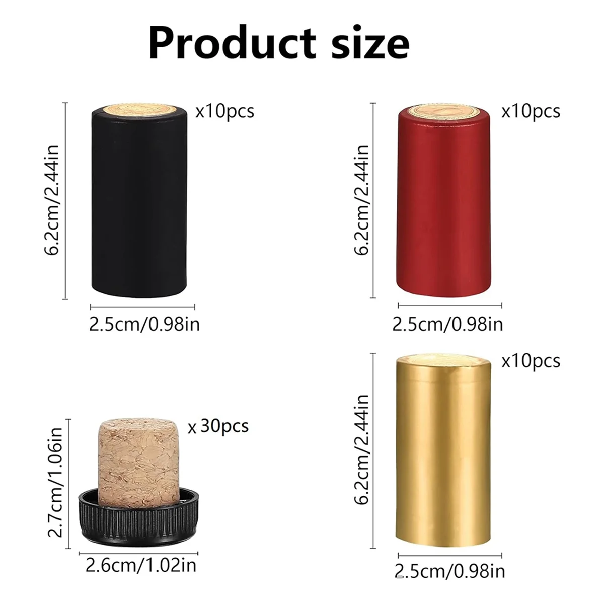 60 шт. герметик для винных бутылок, 30 шт. пробки для винных бутылок и 30 шт. термоусадочных капсул из ПВХ