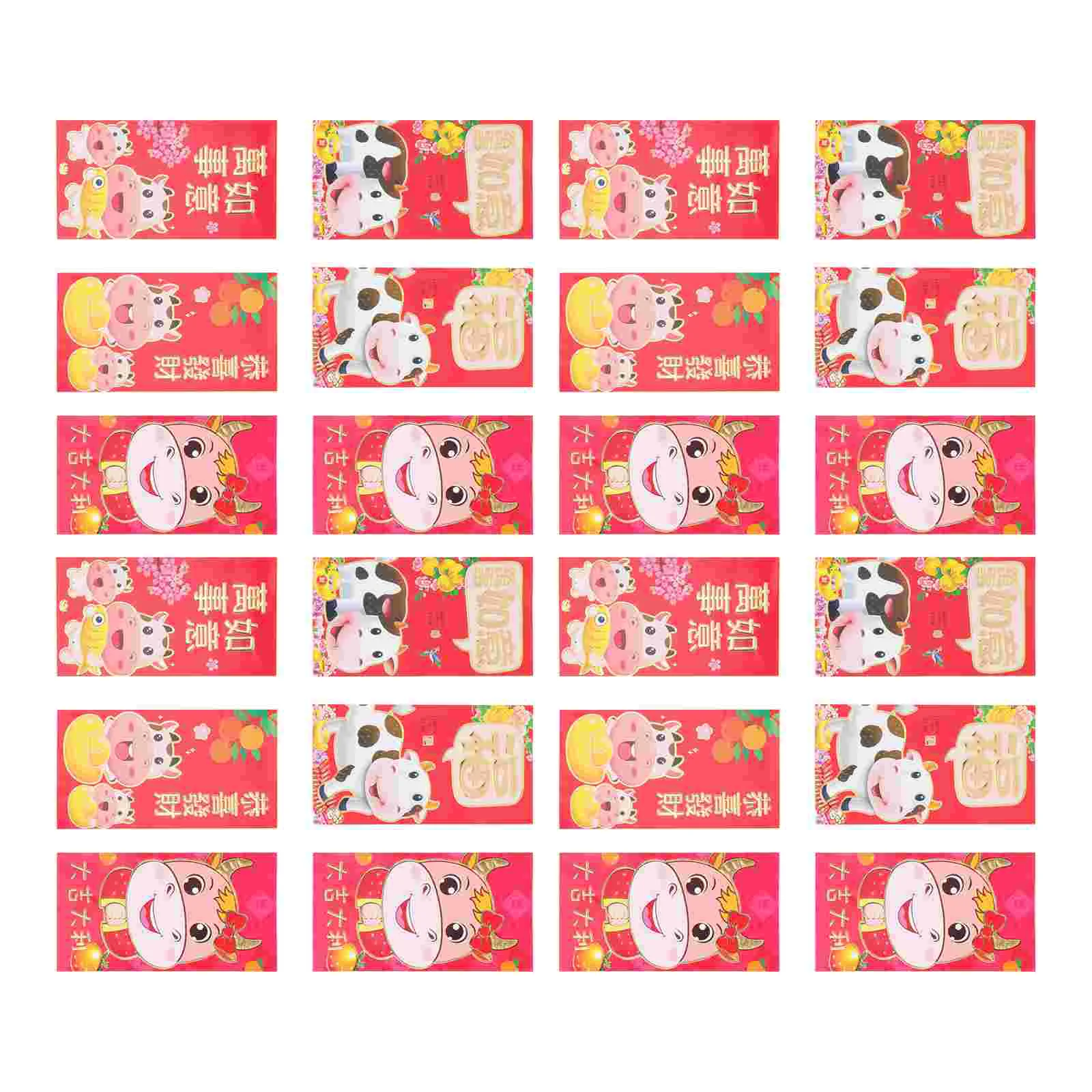 60 шт., красные конверты для китайского Нового года, 2021 дюймов, с мультяшным рисунком Hong Bao, карман для китайского весеннего фестиваля на новый год