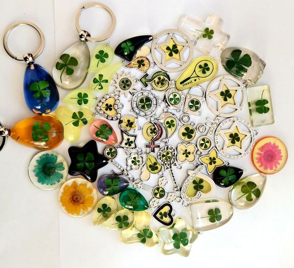 60 pcs fashion clover natural real four leaf clover vogue keychain, Slivery;golden