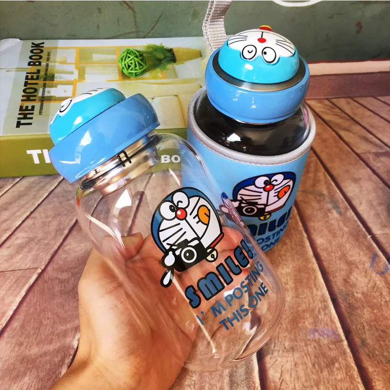 600 мл Милая кавайная бутылка для воды, стеклянная японская бутылка для напитков Doraemon для чая и Herbalife детская колба
