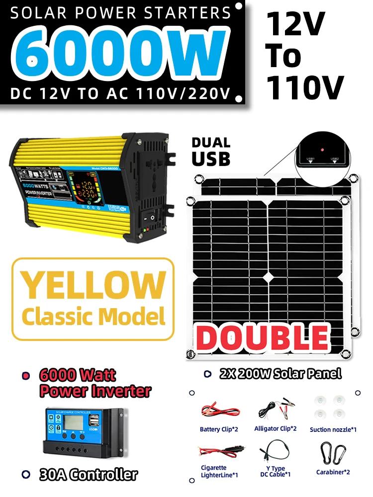 6000 Вт 220 В солнечная пластина полный комплект домашняя вилка 200 Вт комплект солнечной панели с аккумулятором и инвертором интеллектуальный солнечный комплект для кемпинга