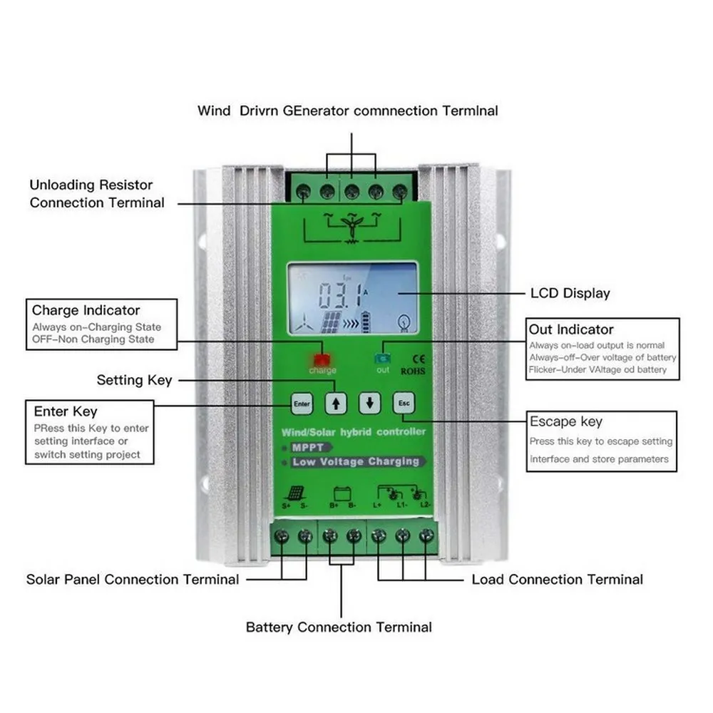 600W 800W Solar Complementary Controller Wind and Select large LCD Screen integrates the control of wind and solar energy.