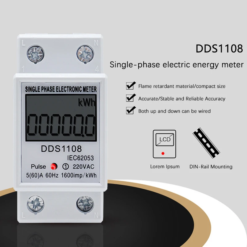 60A DDS1108 LCD Digital Display Single Phase Energy Meter With Backlight Single Phase Energy Meter Test Meters Detectors