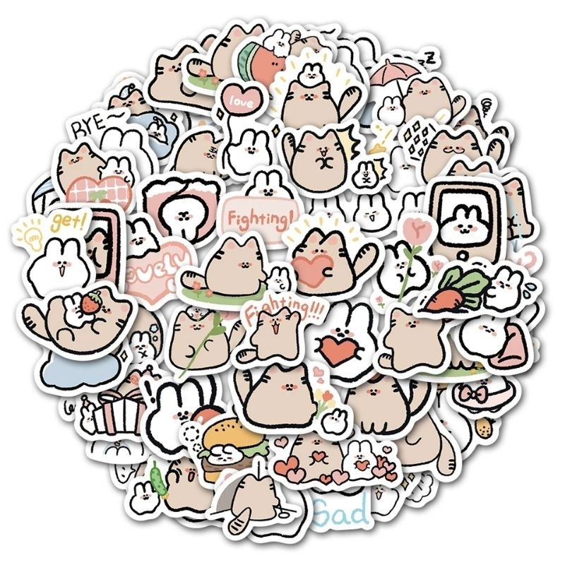 60pcs Sticker Kawaii Cat Rabbit Kucing Kelinci Stiker PVC Laptop Koper HP Waterprood