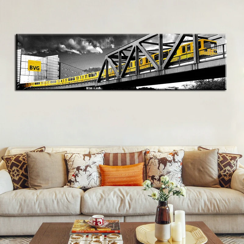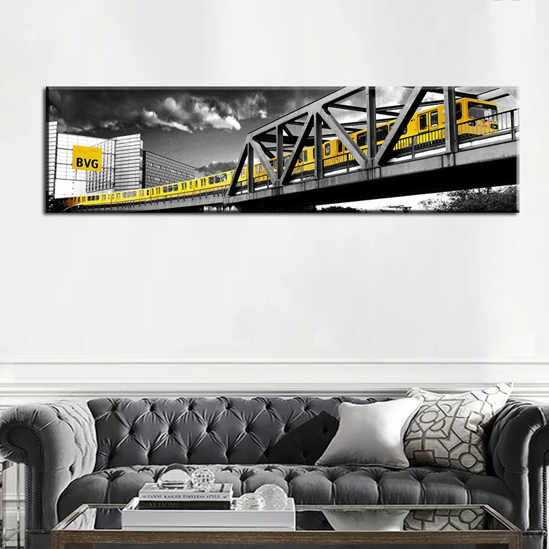 60x210cm-желтый поезд пейзаж холст печать плакаты и принты холст живопись для гостиной стены Искусство Живопись холст Декор
