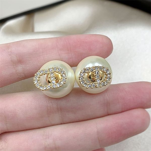 65% off fine jewelry pair letter full diamond pearl earrings female fashion personality light luxury, Golden