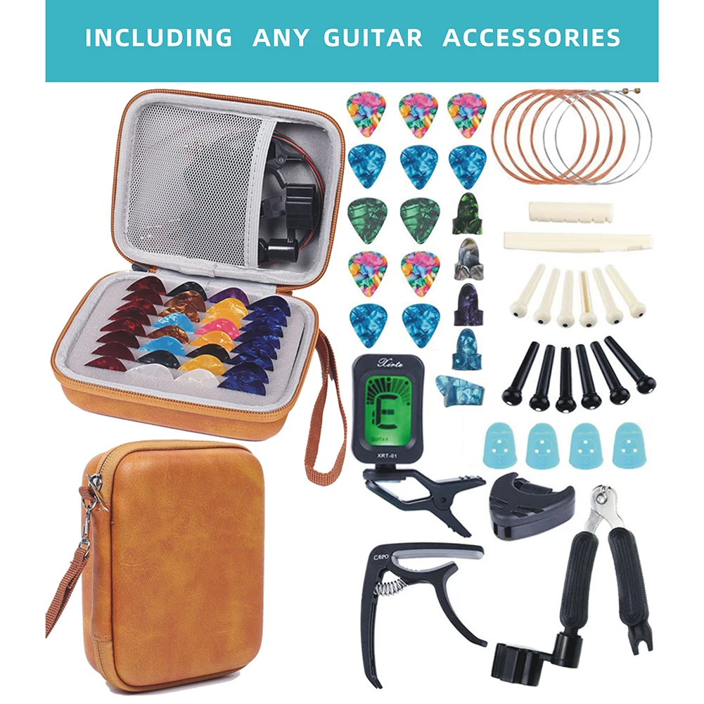 66 шт./компл. гитарные медиаторы, плектры, струнные гайки, тюнер, зажим, защитные части для кончиков пальцев с сумкой для хранения, аксессуары ...