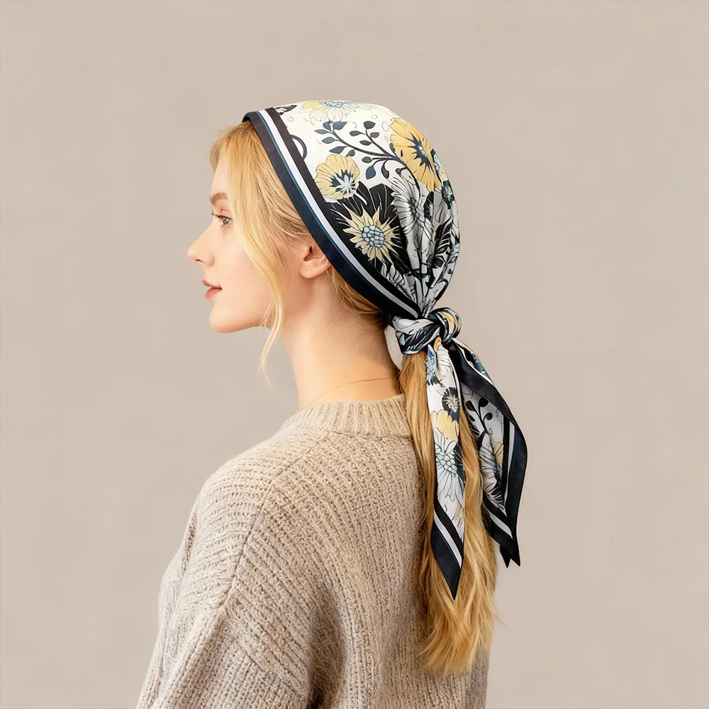 68 см черно-белый шарф с цветочным принтом, женский осенне-зимний шарф из полиэфирного волокна, теплая солнцезащитная шаль для шеи, хиджаб