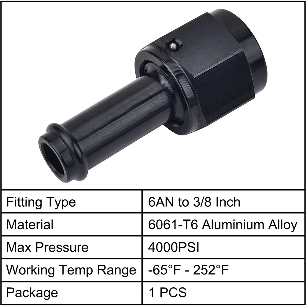 6AN мама до 3/8 прямые поворотные фитинги Алюминиевый шланг штуцер топливной линии адаптер черный (3/8 дюйма)