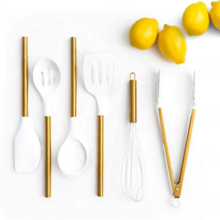 6PCS Gold handle Silicone Kitchen Cooking Utensils Set Cooking Tools