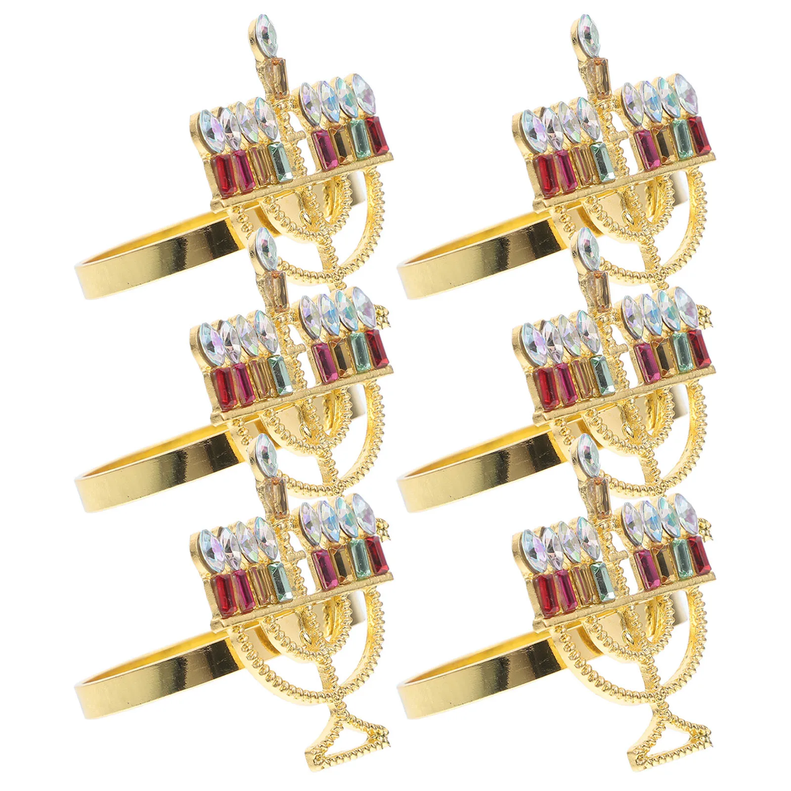 6Pcs Gold Napkin Rings Menorah Design Rhinestone Accented Metal Napkin Holders Jewish Celebration Table Decor Holiday Dining