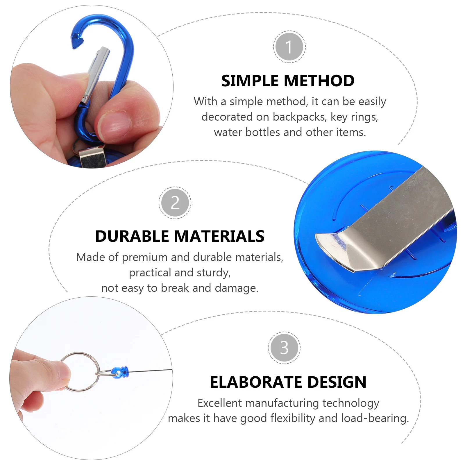 6Pcs Retractable Key Buckles Sturdy Portable Backpack Hanging Buckle Key Reel Rings Anti-Lost Handbag Pulling Buckle
