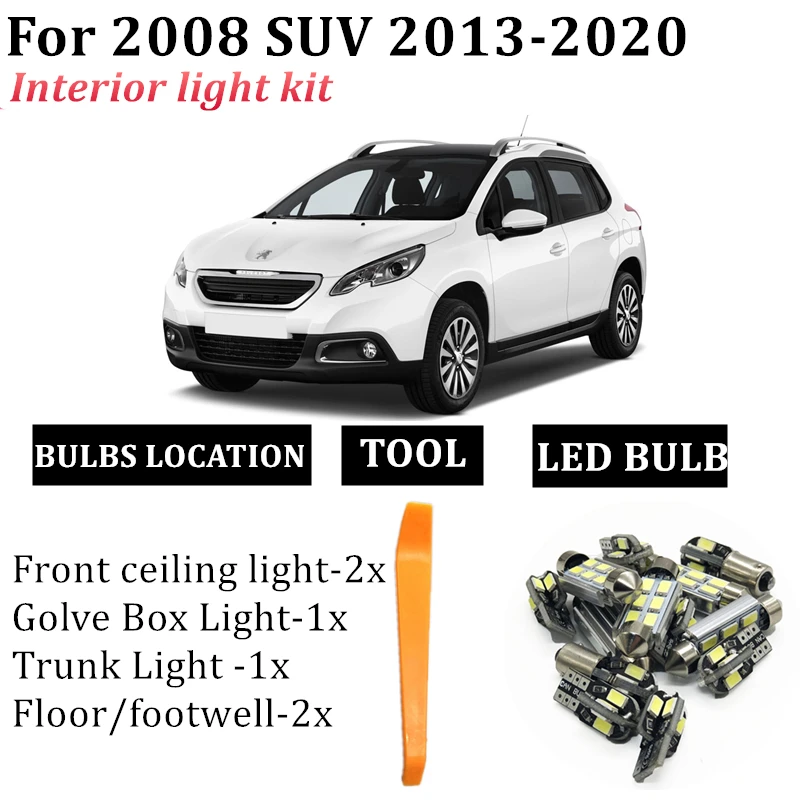 6X Canbus Error Free светодиодный внутренний светильник комплект посылка для 2013-2020 Peugeot 2008 внедорожник автомобильные аксессуары Компас Карта Купол ...