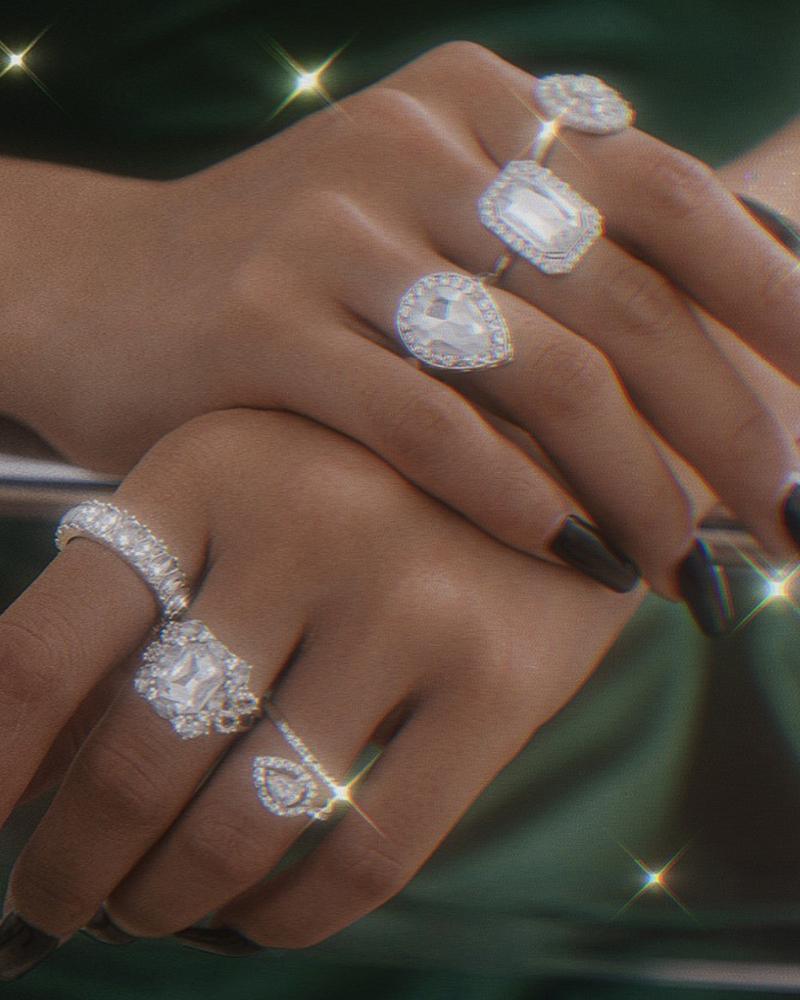 6pcs Geometric Square Shaped Allover Rhinestone Rings, Silver