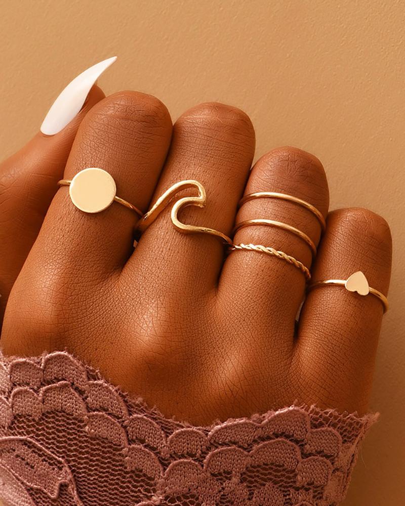 6pcs Heart Geometric Pattern Knuckle Stackable Rings Set, Gold