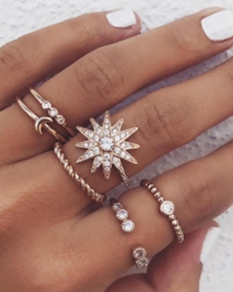 6pcs Stackable Sun Moon Geometric Opening Ring & Rings Set, Gold