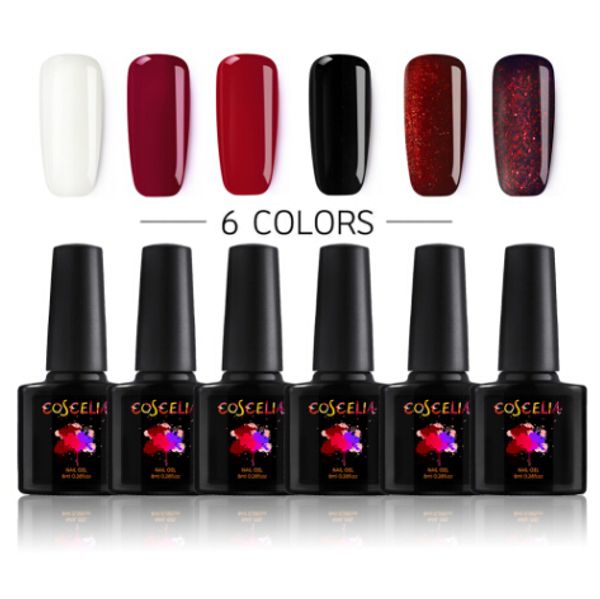 6pcs/kit 8ml nail gel polish kit for manicure uv gel polish led professional all for varnish diy nail art tools set salon, Red;pink