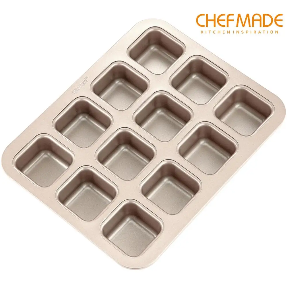 CHEFMADE Brownie Cake Mold,12-Cavity Non-Stick Square Blondie Bread Pan Approved for Oven Baking