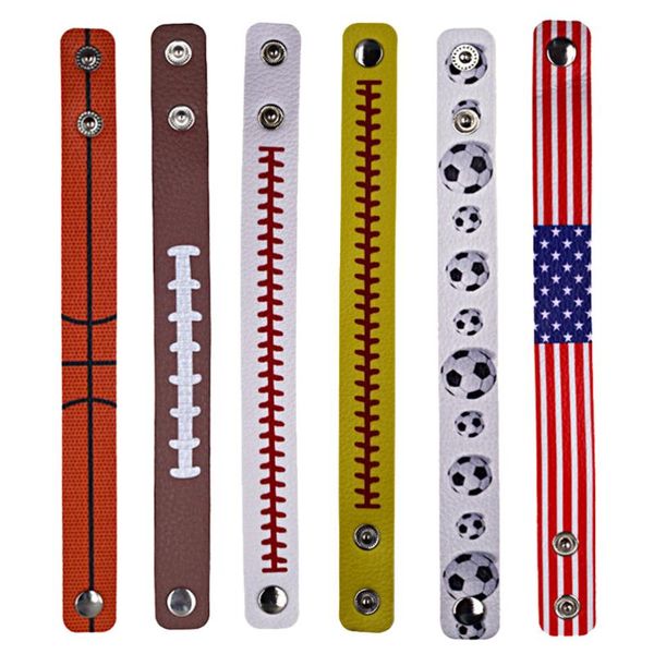 6pcs sports leather bracelet independence day wristband creative bangle fashion cuff (brown, white, Golden;silver