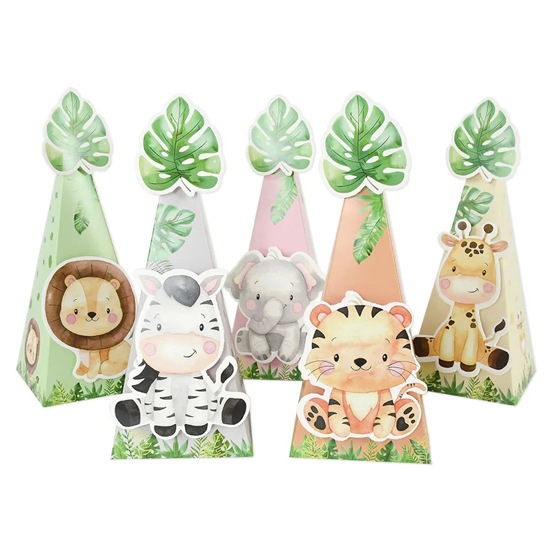 6pieces Jungle Themed Party Cartoon Animal Gift Box Birthday Party Baby Shower Children's Day Candy Cookies DIY Packaging Boxes