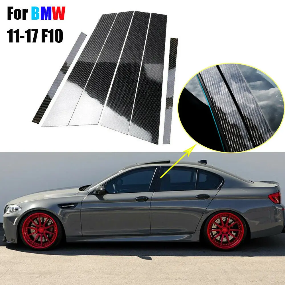 6x углеродное волокно, черная Автомобильная дверь, окно, колонна BC, столб, отделка, наклейка для ПК для BMW 5 серии F10 Sedan 2011-2017 525i 528i 530i