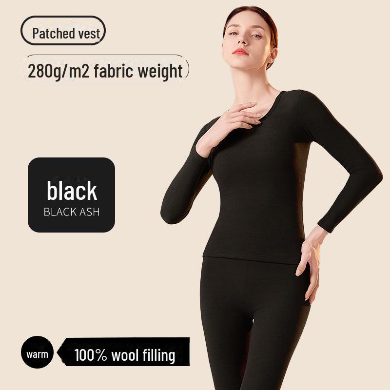 Комплект антибактериального термобелья 7A: 100% шерсть, унисекс, толстый для осени/зимы XL чёрный