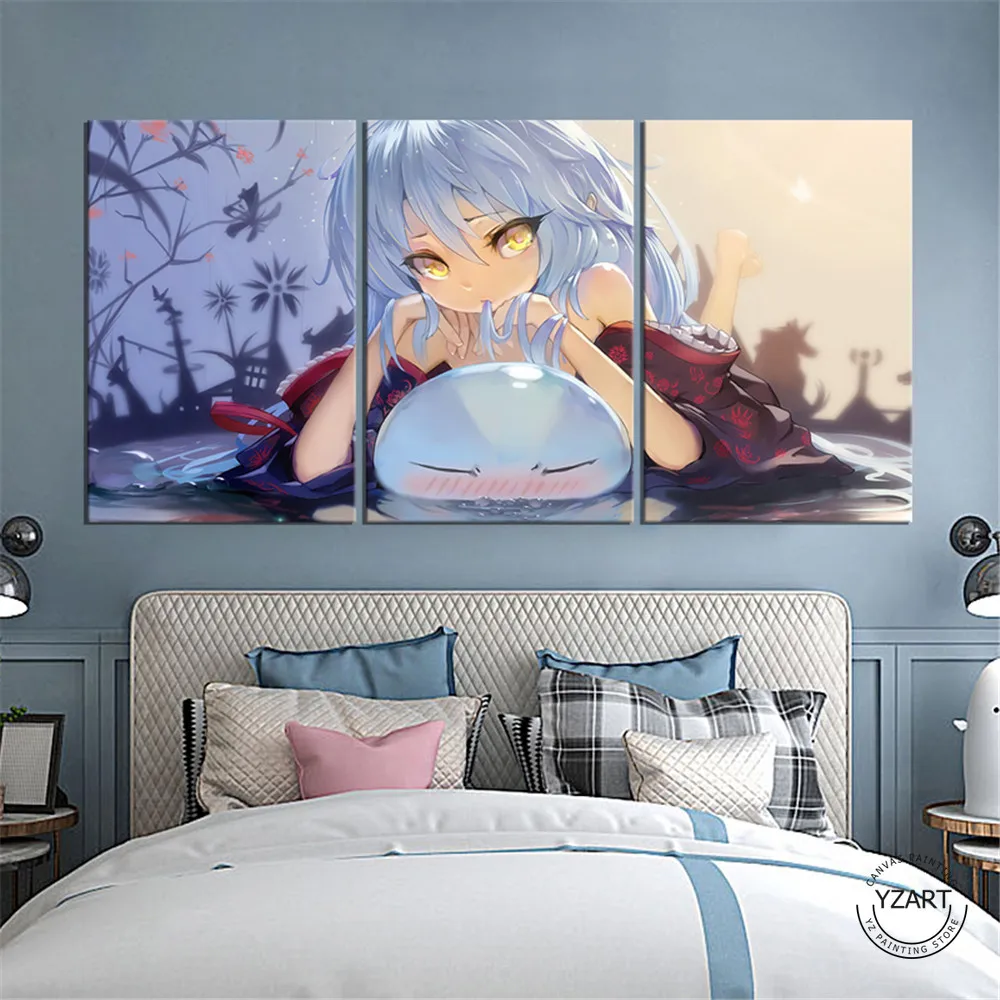 7 дизайнов, 3 шт., японское аниме в тот раз, когда я получил восстановление как слайм, плакат, милая аниме девушка, холст, искусство, настенная ж...