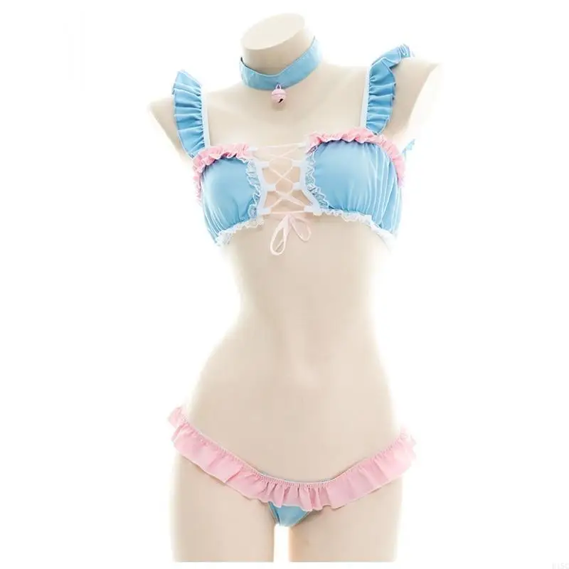 Сладкая лолита женщин бикини розовые голубые оборки Подыхание для перекрестной повязки милая горничная косплей костюм пляж.