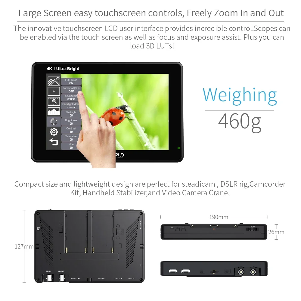 7-дюймовый сенсорный экран FEELWORLD LUT7S 3D LUT Field Monitor 2200nits 3G SDI 4K HDMI Full HD 1920x120 0 IPS монитор для DSLR-камер