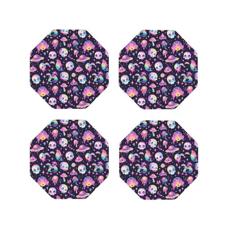 Coasters Set of 4 - Skull mushroom space Drink Coasters for Tabletop Protection Leather Coasters for Living Room Decor and Housewarming Gift Octagon
