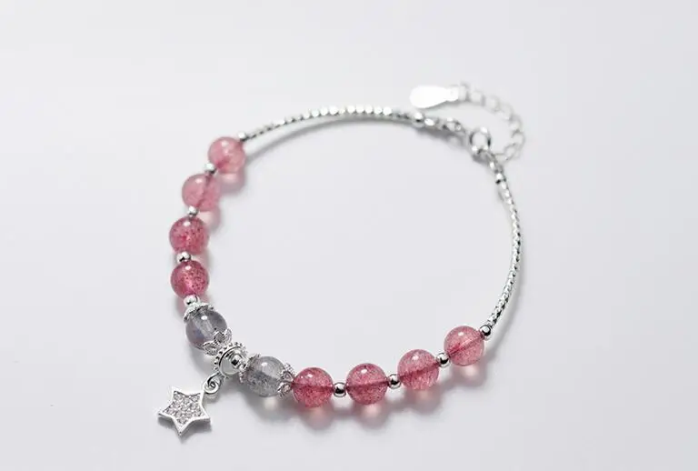 7 мм 100% реальный. Женское серебряное ювелирное изделие, натуральный лунный камень и розовая клубника, кварцевый камень, звезда, cz, Браслет-манжета GTLS660