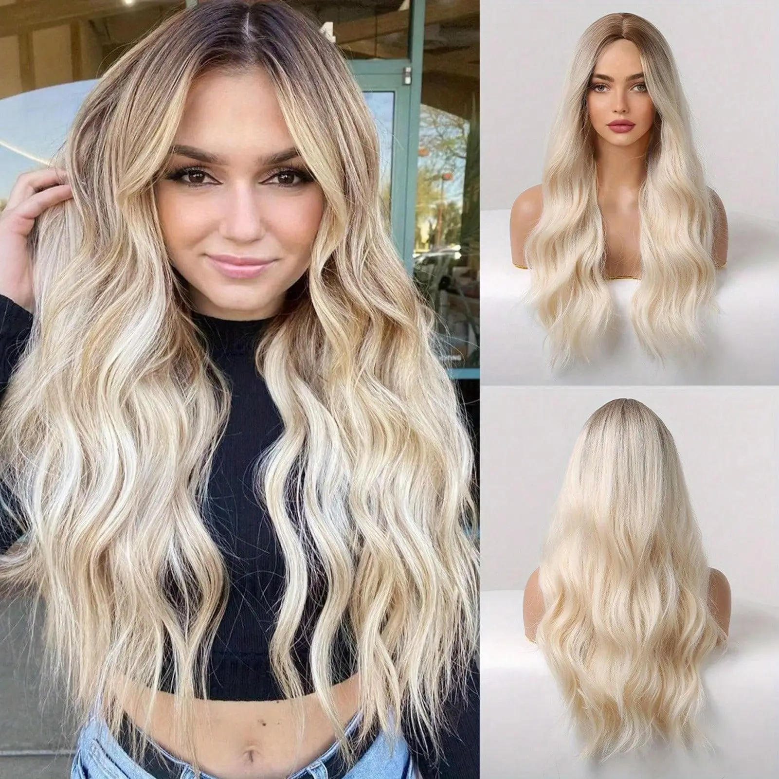 Золотистые натуральные длинные вьющиеся волосы, женский парик из высокотемпературного шелка из синтетического волокна 26 дюймов, подарок для девочки.
