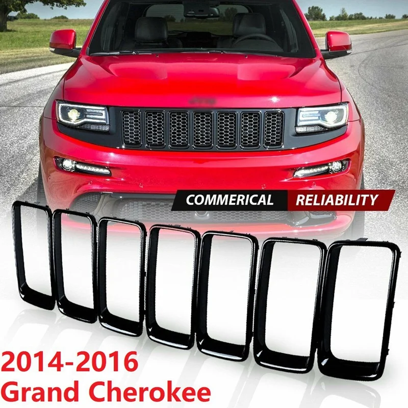 7 шт. блестящее черное кольцо для гриля, передняя флейта, комплект отделки для Jeep Grand Cherokee 2014-2016