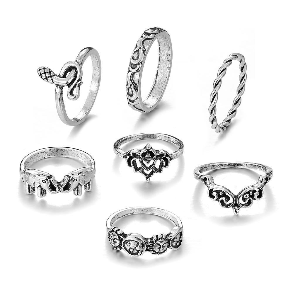 7 шт., винтажное элегантное кольцо со слоном, резьба по цвету, вечеринка, портрет, набор полых колец в виде змеи серебряный