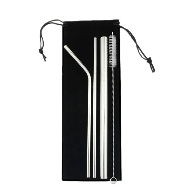 7 шт. многоразовая питьевая соломинка высокого качества 304 нержавеющая сталь металлическая соломинка с чистящей щеткой для кружек 4Pcs-Silver