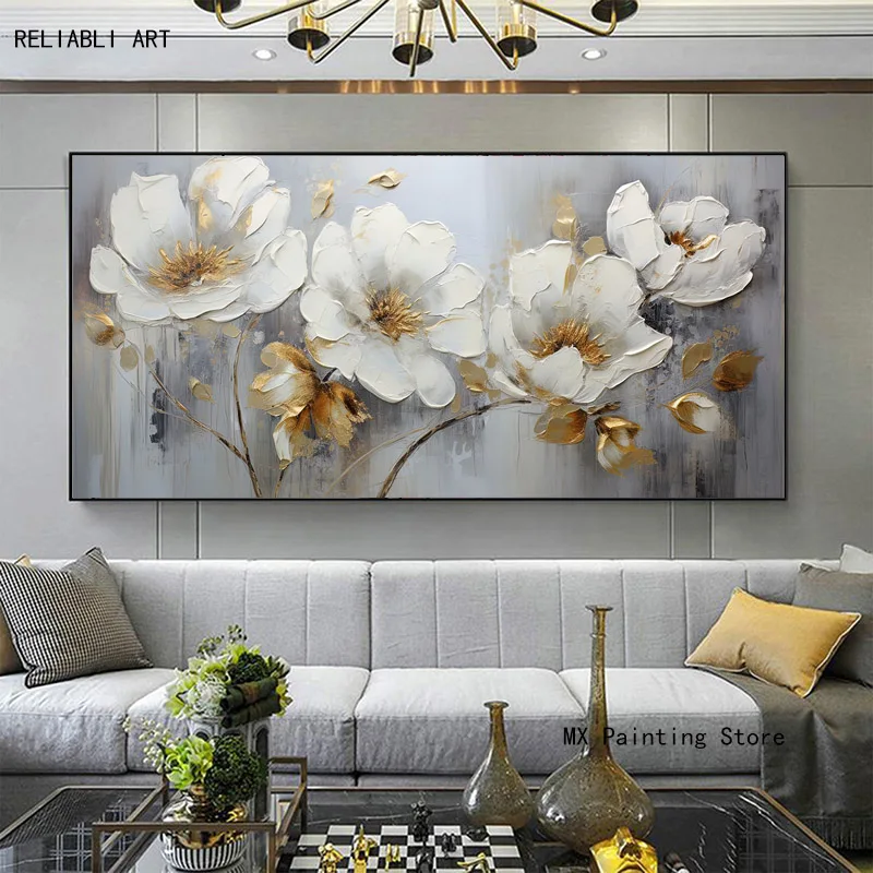 Home Decoration Painting,Abstrract Art White Flower On Canvas,Modern Print Poster Living Room Pictures Cuadros Unframed