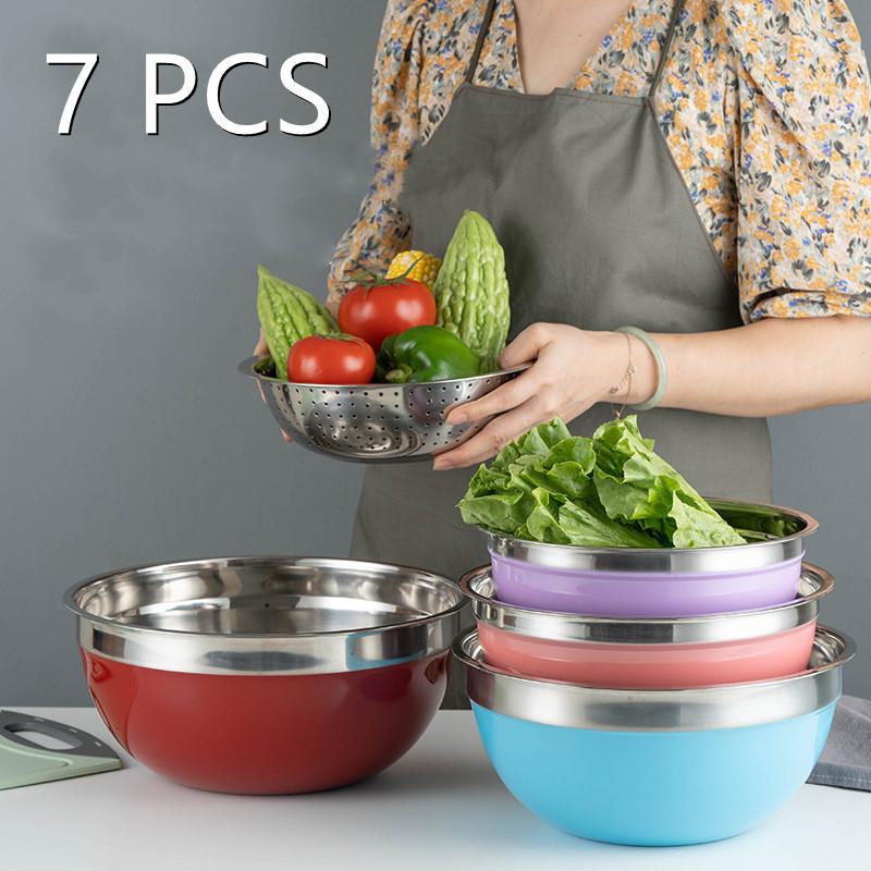 7 шт. цветных мисок из нержавеющей стали с крышками, набор мисок для смешивания салата, миска для приготовления пищи, кухонный контейнер для мытья и хранения