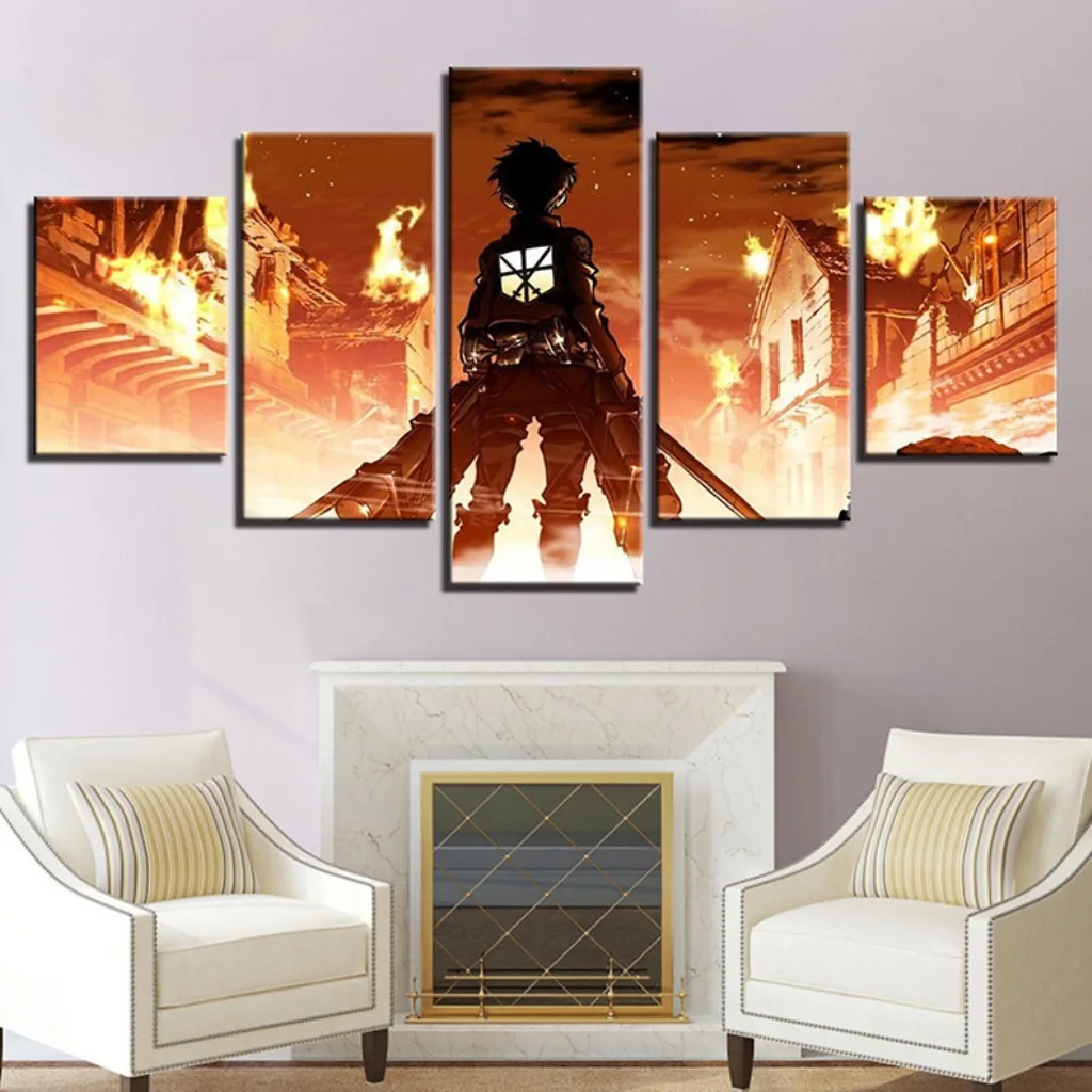 5pcs Japan Anime Attack On Titan Flame Picture Wall Art Home Decor Poster Canvas HD Print Painting For Living Room Decoration