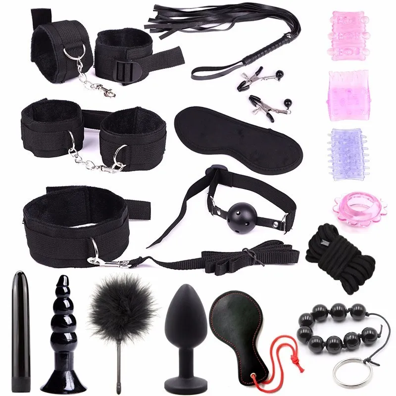 7/18 шт./компл. БДСМ бондаж набор наручники кнут рот кляп и веревка Силиконовые анальные бусины Анальная пробка вибратор секс-игрушки для женщ...