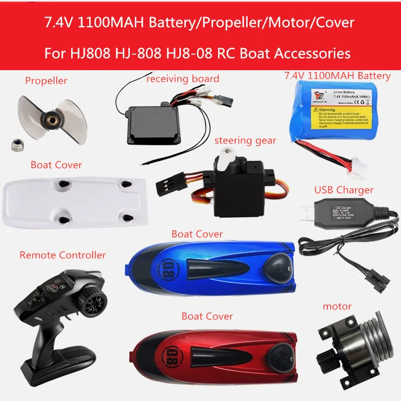 7,4 V 1100mAh батарея приемная плата Мотор Пропеллер лодка Крышка для HJ808 HJ-808 RC лодка HJ808 аксессуары батарея HJ808