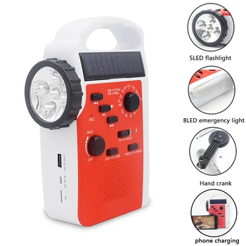 7 In 1 Flashlight Solar Multifunction Led AM/FM Radio TF Card Outdoor Bluetooth Emergency Reading Lamp Hand Crank Speaker