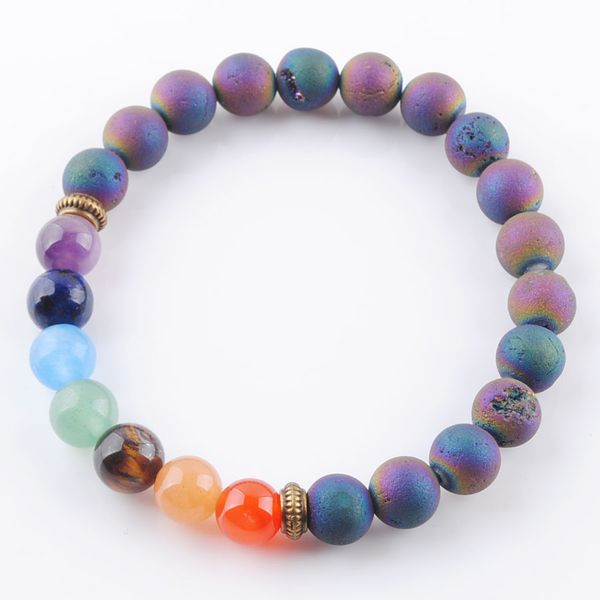 7 chakra colorful mineral beads beaded strands natural gem stone rosary yoga mala bead meditation men women jewelry k3326, Black