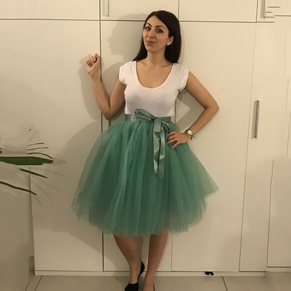 7 layers women fashion tulle skirts high waist pleated tutu midi womens puffy mesh petticoat lolita skirt falda saias femininas, Black