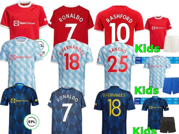 #7 ronaldo #25 sancho home red soccer jersey 2021/2022 #11 greenwood #18 b.fernandes away soccer shirt 21/22 #10 rashford #6 pogba #23 shaw, Black;yellow