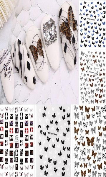 7 styles lace leopard printing color butterfly nail art stickers holographic 3d gradient butterflies nail decals diy manicure deco1346491, Black