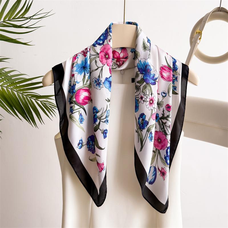 70 см Маленький квадратный шарф Имитация шелка Шарф Головной платок Весна и лето Шарф с принтом растений и цветов Шарф Профессиональный шарф Женский Новый 70*70cm