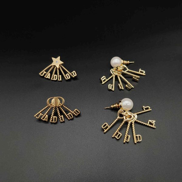 70% off asymmetric 925 silver needle wheat ear letters back hanging star same high sense earrings, Golden