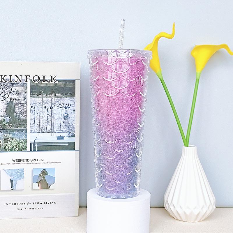 700 мл двухслойная многоразовая чашка для рыбьей чешуи пластиковая теплоизоляционная соломенная чашка с крышкой спортивная питьевая чашка рождественские подарки