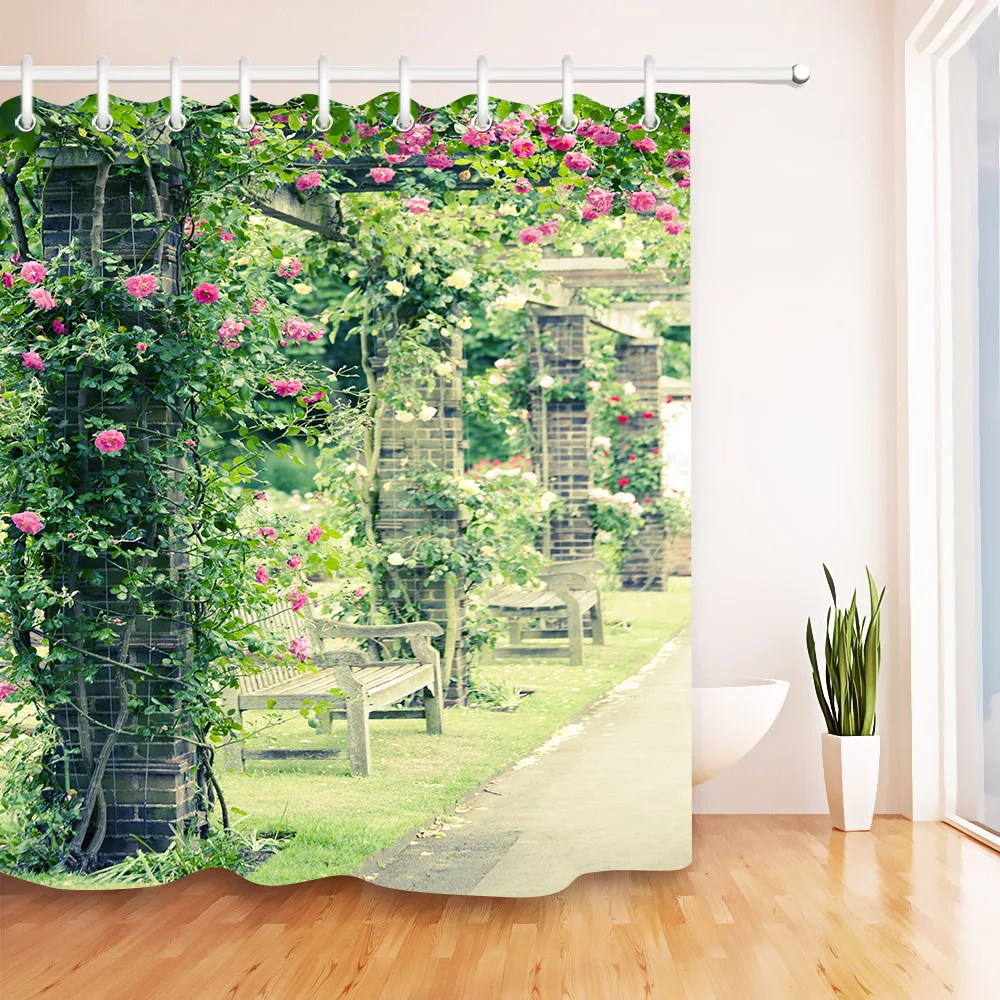 72 ''альпинистские розы с розовыми цветущими цветами Ванная комната Водонепроницаемая Ткань занавеска для душа из полиэстера 12 крючков
